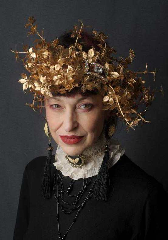 Cerchietto con ramo di foglie oro e centrale con swarovski.