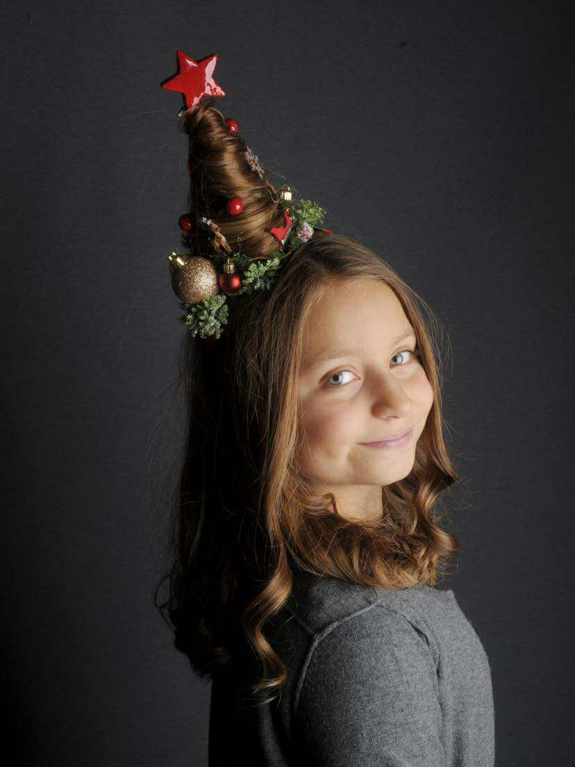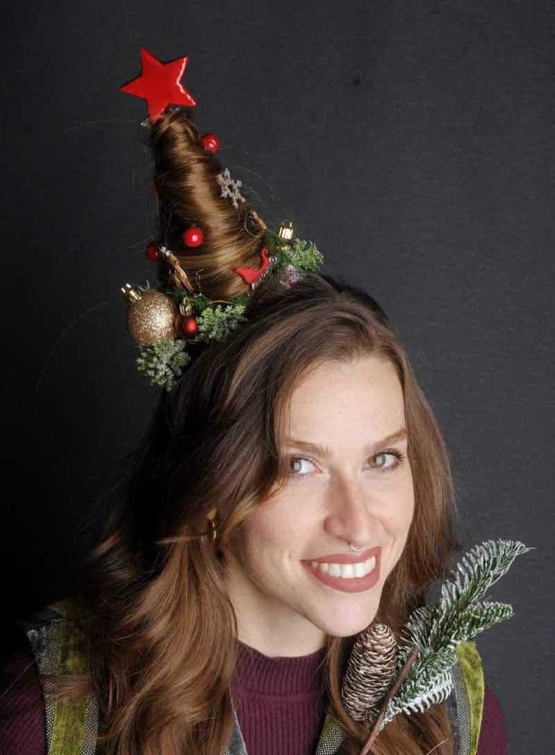 Cerchietto con alberello di capelli e decorazioni Natalizie.