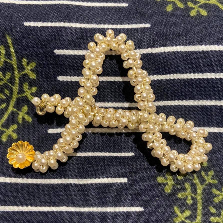 Spilla monogramma con filigrana e perline. Materiali free nikel.