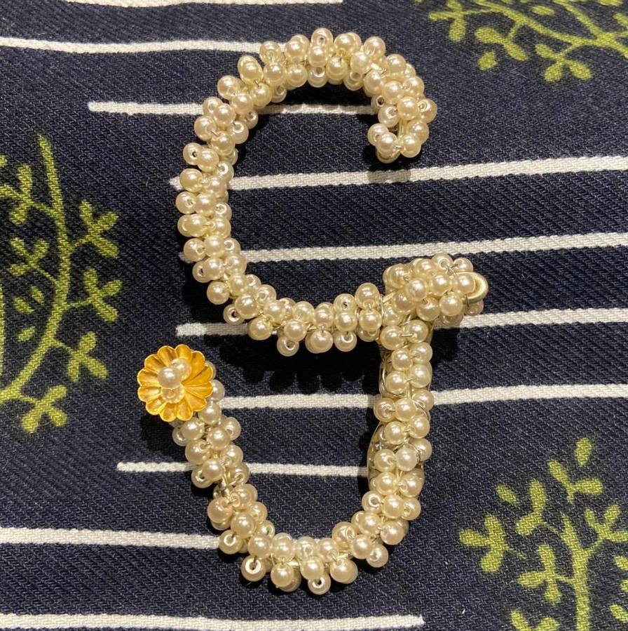 Spilla monogramma con filigrana e perline. Materiali free nikel.