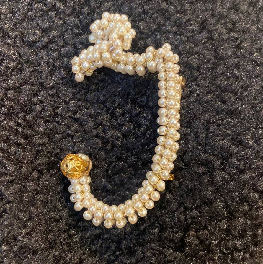Spilla monogramma con filigrana e perline. Materiali free nikel.