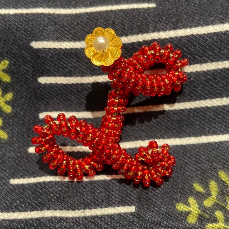 Spilla monogramma con filigrana e perline. Materiali free nikel.