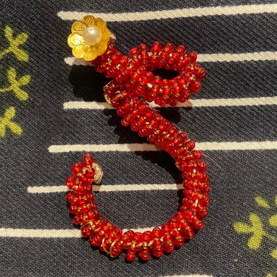 Spilla monogramma con filigrana e perline. Materiali free nikel.