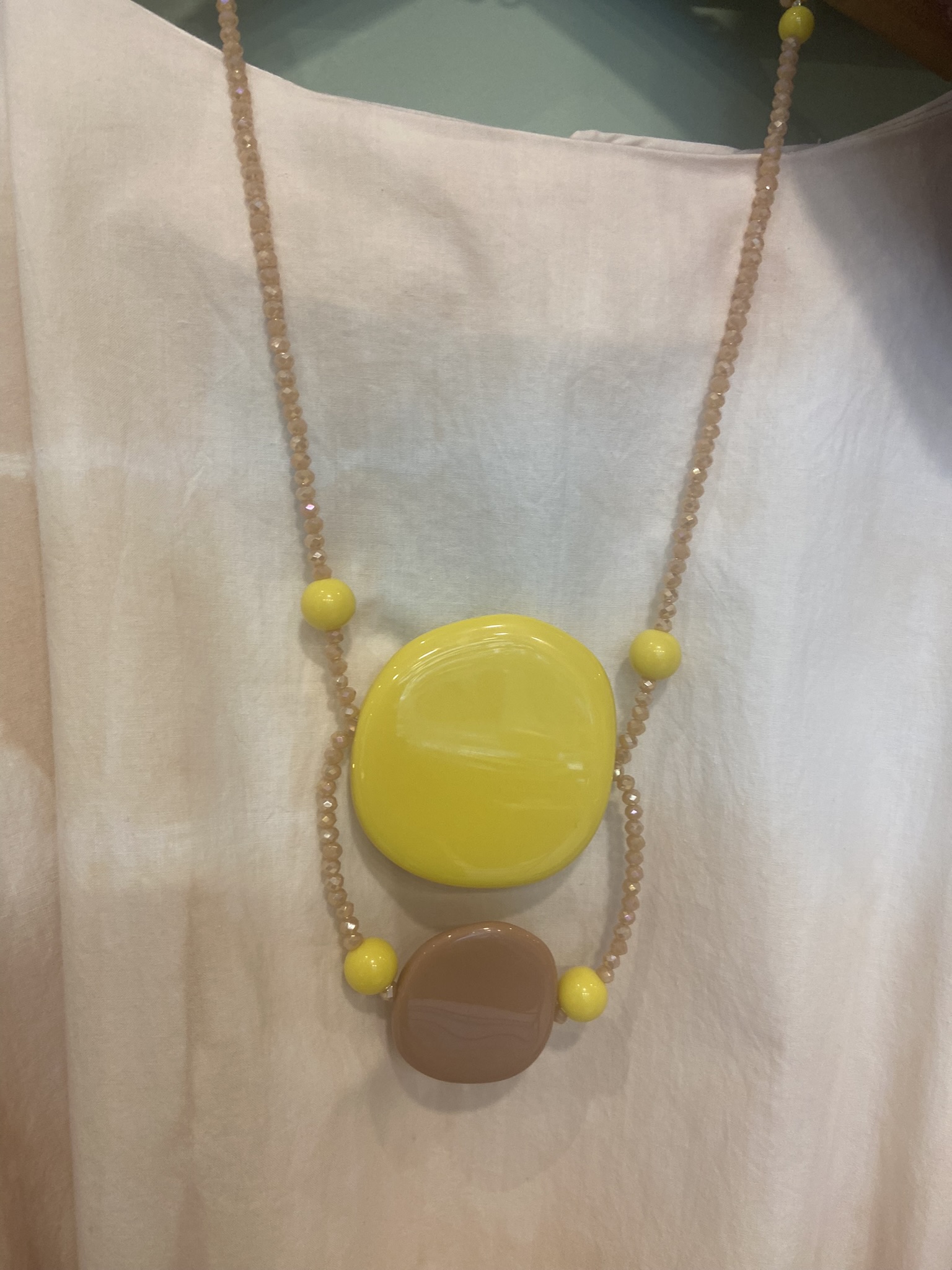 Collana con perle in resina e mezzo cristallo.. Materiali nikel free