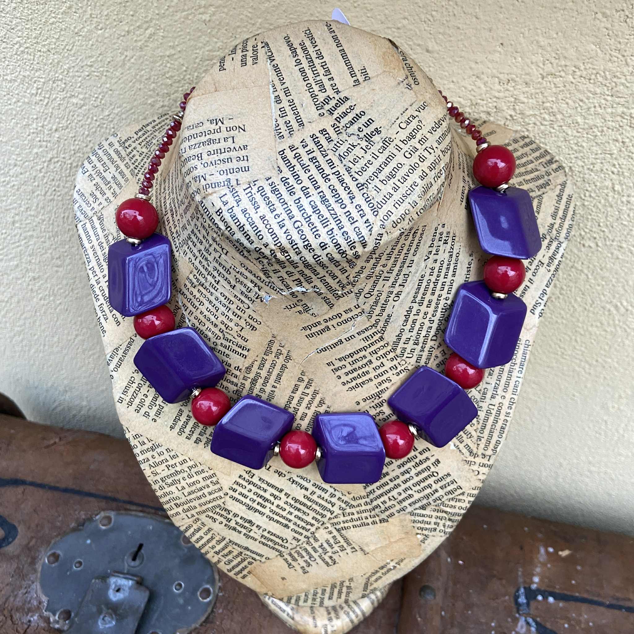 Collana resine viola e rosse